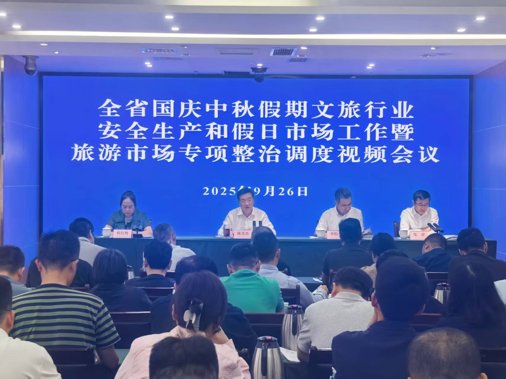 9月26日,四川省文化和旅游厅联合公安厅、省市场监管局、省消防救援总队等部门联合举行全省文旅行业安全生产和假日市场工作暨旅游市场集中整治调度视频会议。